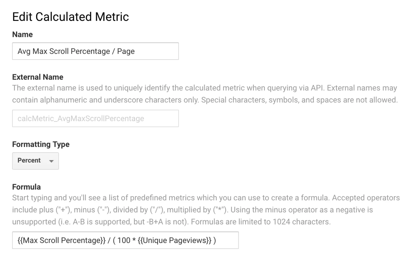 However, when you create a calculated metric to compute the average Max Scroll Depth value per unique pageviews in a session, you suddenly have a very useful metric.